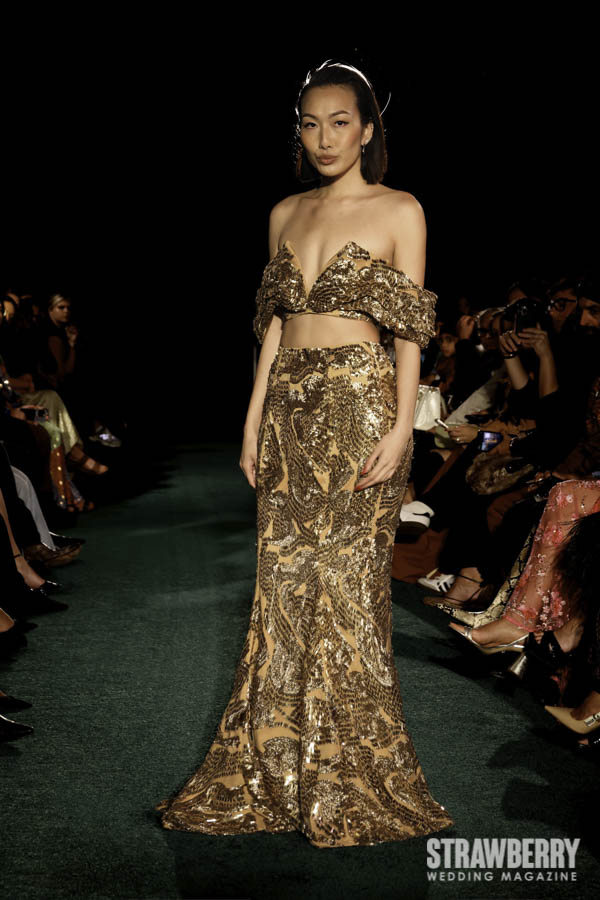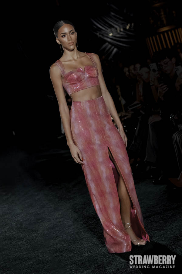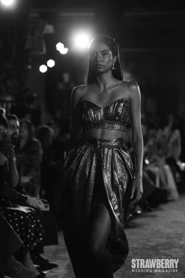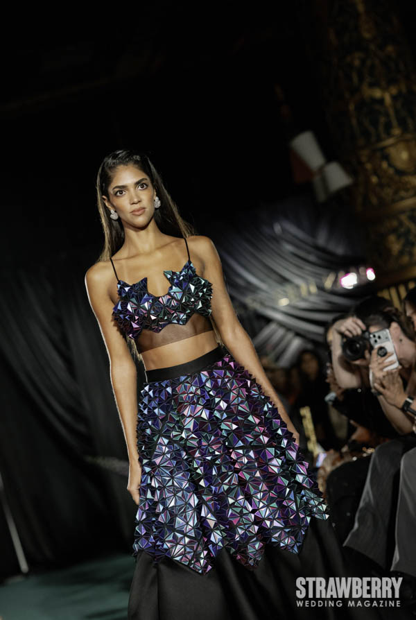 Sustainability is woven, quite literallyi nto the collection’s foundation. Kaur introduces 3D-printed fabrics crafted from bio-based materials, recycled glass beads, plastic-derived twill, and reimagined sequins, each demonstrating how technology and artistry can coexist gracefully. The result is bridalwear that feels contemporary without compromise innovative, tactile, and deeply responsible. Kaur’s approach proves that modern couture can honor both the planet and the art form.