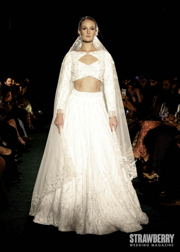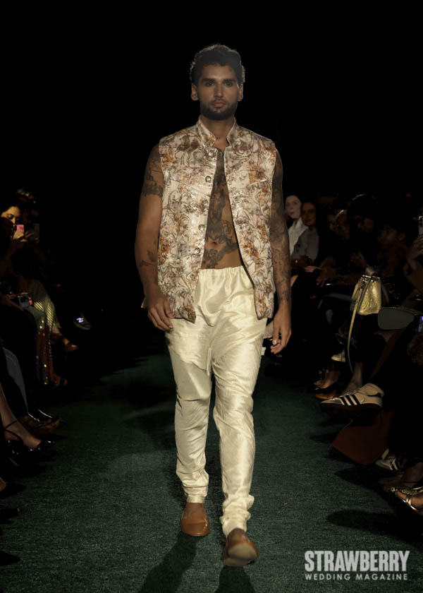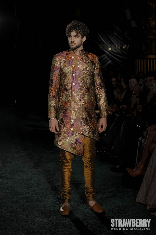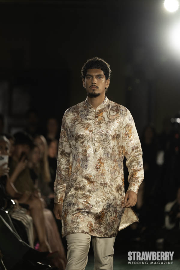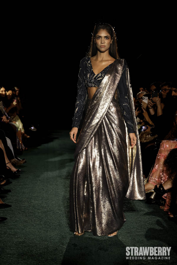 This season, Kaur reimagines the bridal wardrobe through the lens of botanical wonder. Petal-like layers, cascading drapes, and reflective finishes mimic the rhythm of a blooming garden. The interplay of soft florals and metallic shine creates a dreamlike tension serene yet dynamic. Her use of sculptural silhouettes and fluid movement evokes the transformation of nature itself, capturing a sense of life, renewal, and quiet majesty.